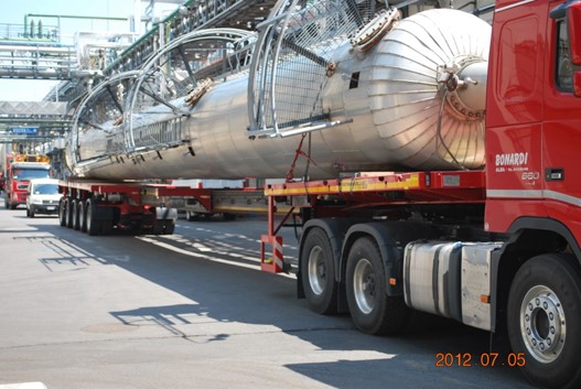 Progettazione, costruzione e fornitura di una colonna di distillazione ad alte prestazioni per un impianto chimico in Italia, progettata per garantire affidabilità in condizioni di alta pressione e vuoto totale.